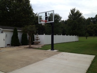 Great examples of how our customers have poured a little extra concrete or put down some blacktop to extended their driveway or patio to create a wonderful basketball court for their family.